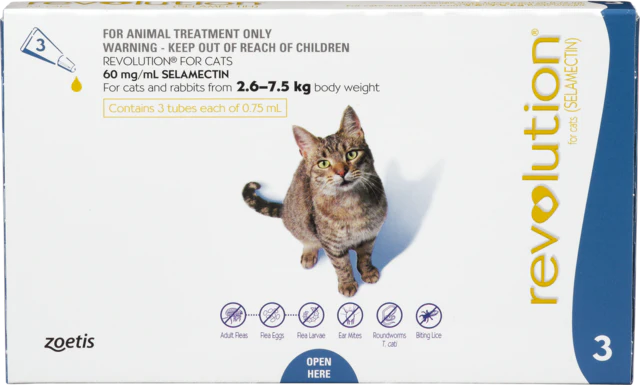 Revolution is available in a range of sizes to suit any cat. You simply squeeze it onto the skin on the back of your cat’s neck every month.