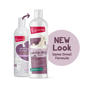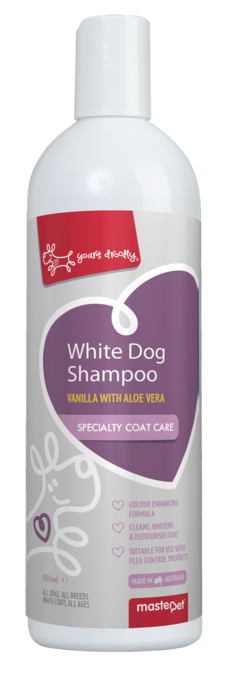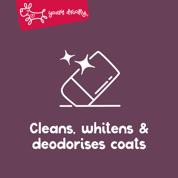 Formulated to whiten and brighten coats and reduce staining from coat yellowing and grass stains.