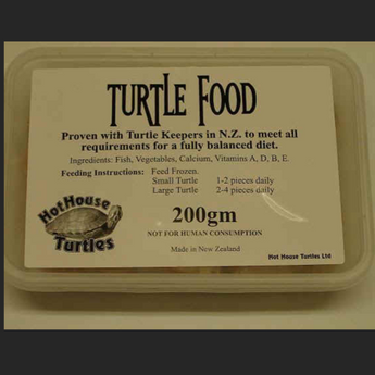 Simply drop a cube of Hot House Turtles food into your turtle tank, it will begin to thaw instantly, and should immediately be eaten. When feeding hatchlings we suggest that you cut the cubes in half when the food is frozen and then feed as per above.