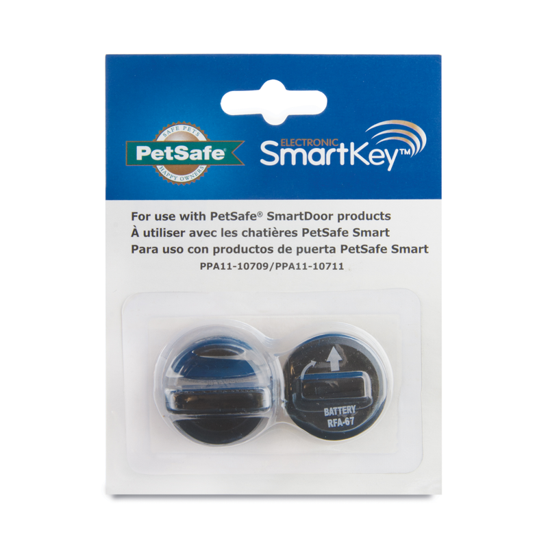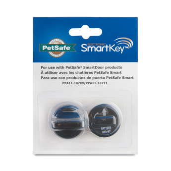 Replace a SmartKey or add more pets to your PetSafe® Electronic SmartDoor. The SmartKey™ fits most collar ID tags and uses RFID technology to send a signal that locks and unlocks the door flap when it senses your pet.
