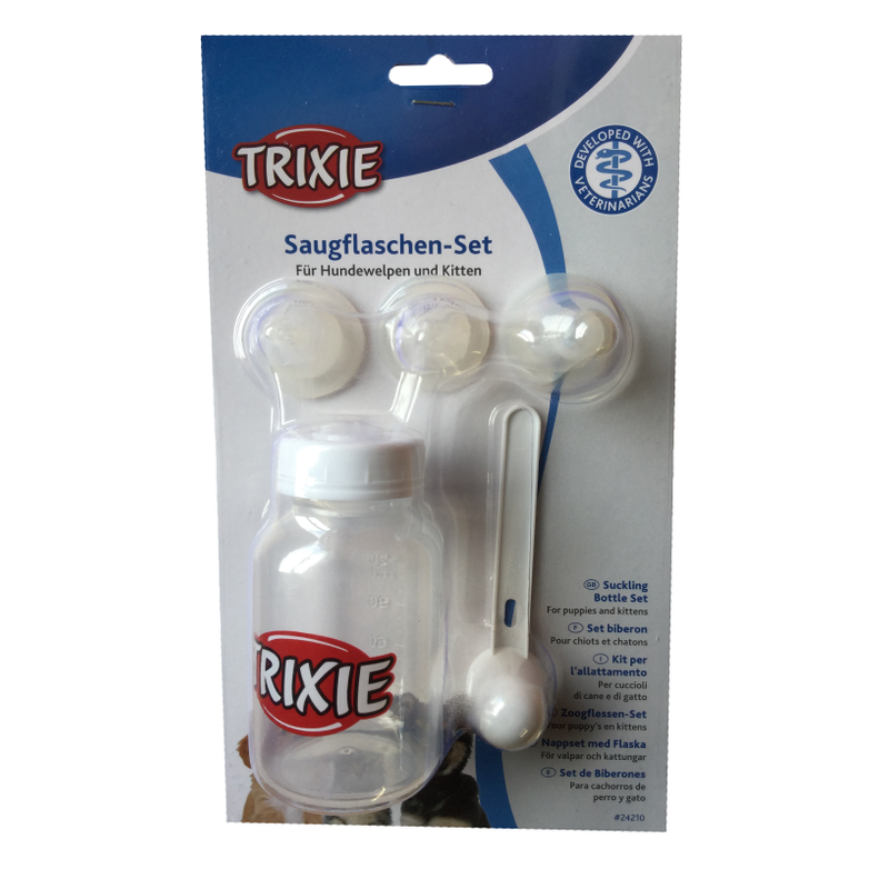 The Trixie Nursing kit comes with a bottle, brush and 3 silicone teats. It holds a capacity of 57 ml