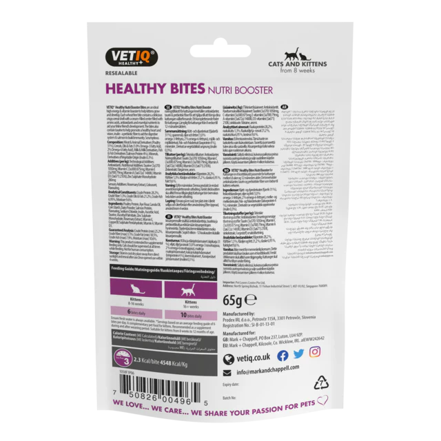 VETIQ® Healthy Bites Nutri Booster Treats are an ideal high energy & vitamin booster to help kittens grow and develop.