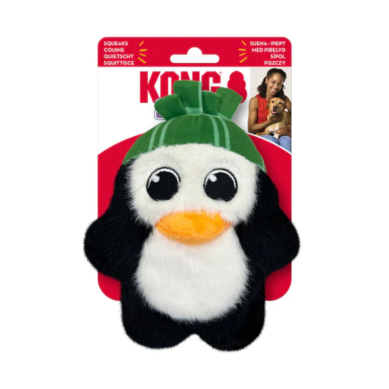 KONG Holiday Snuzzles Penguin is plump full of fun with a full body squeaker with a long, loud call. The super plush exterior is great for holiday snuggles. The dense mouthfeel extends engagement by rewarding appropriate chewing with every bite. Ideal for indoor fun when the weather outside is frightful, the flat shape is ideal for dogs of all different sizes.