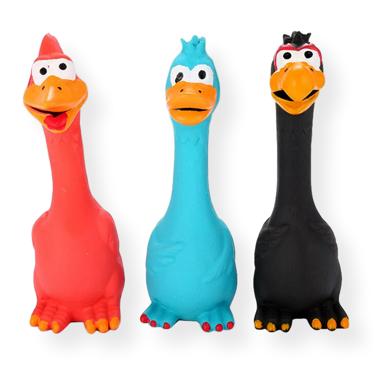 The Latex Screaming Chicken Dog Toy is a classic novelty toy designed to add fun and noise to playtime. Made from flexible latex, it produces a loud squeaking sound when squeezed, encouraging interactive play and keeping dogs engaged.