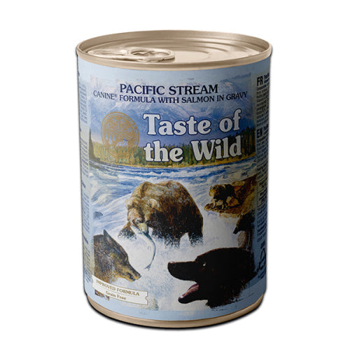 A great tasting complement to the dry Taste of the Wild formulas, the Pacific Stream Canine Formula with Smoked Salmon can will satisfy your pet’s taste for wet food. This complete and balanced formula can also be your pet’s sole diet. Contains salmon and smoked salmon, perfect sources of omega-3 fatty acids. Sweet potatoes, blueberries and raspberries are great sources of natural antioxidants for a healthy lifestyle.